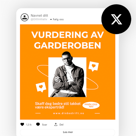 Vi har utviklet design du kan tilpasse for Instagram, Facebook, LinkedIn, X (Twitter) og YouTube – med flust av alternativer – slik at du selv kan velge hvor du ønsker å kommunisere!