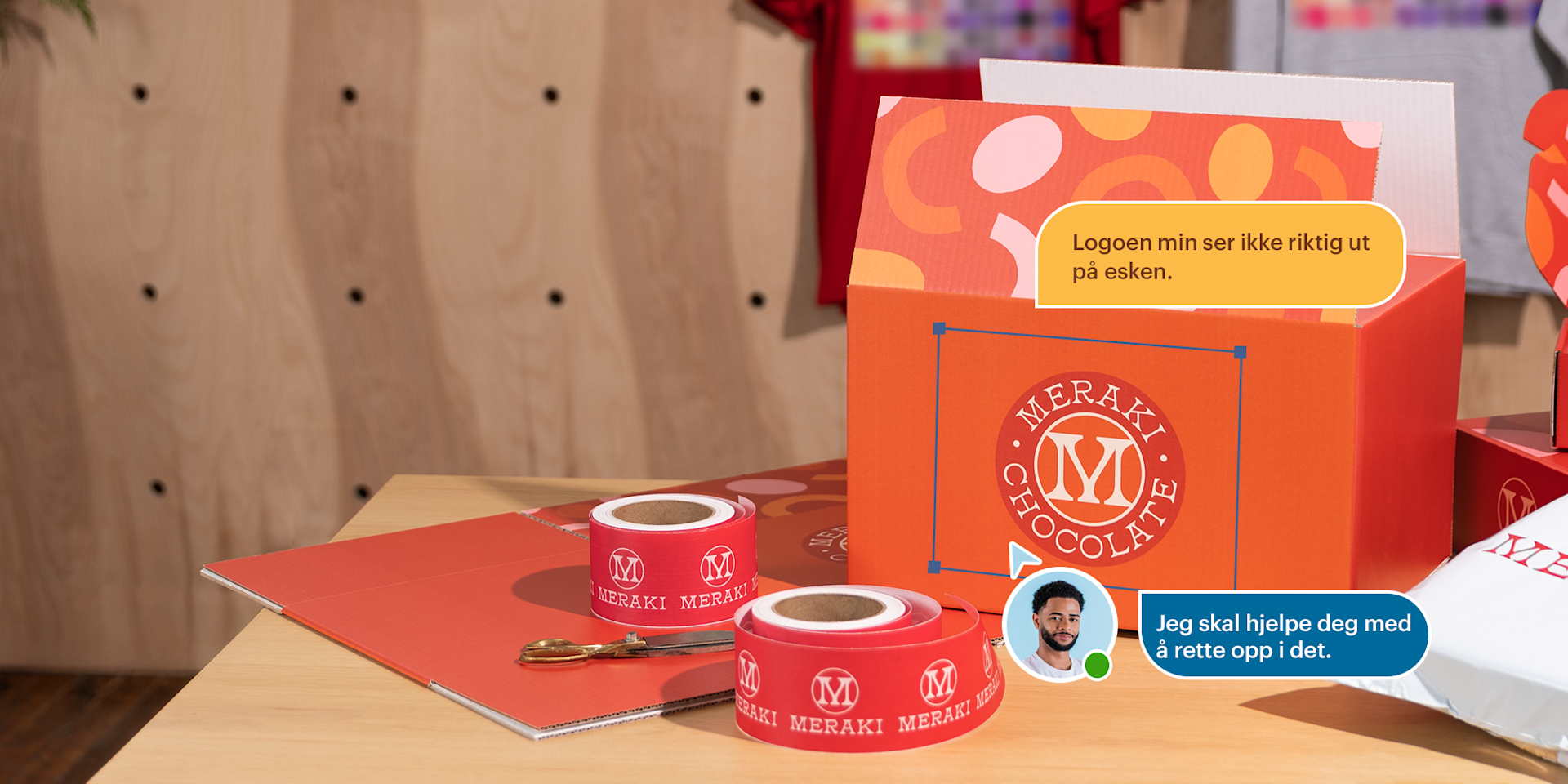 Du kan gjøre opplevelsen komplett med pakketape med logo eller egne klistremerker. Dette lar deg også sette ekstra farge på emballasje uten logo. Og trenger du hjelp med designet, antallet eller noe annet, kan du ta kontakt med kundeservice, som alltid står til tjeneste.
