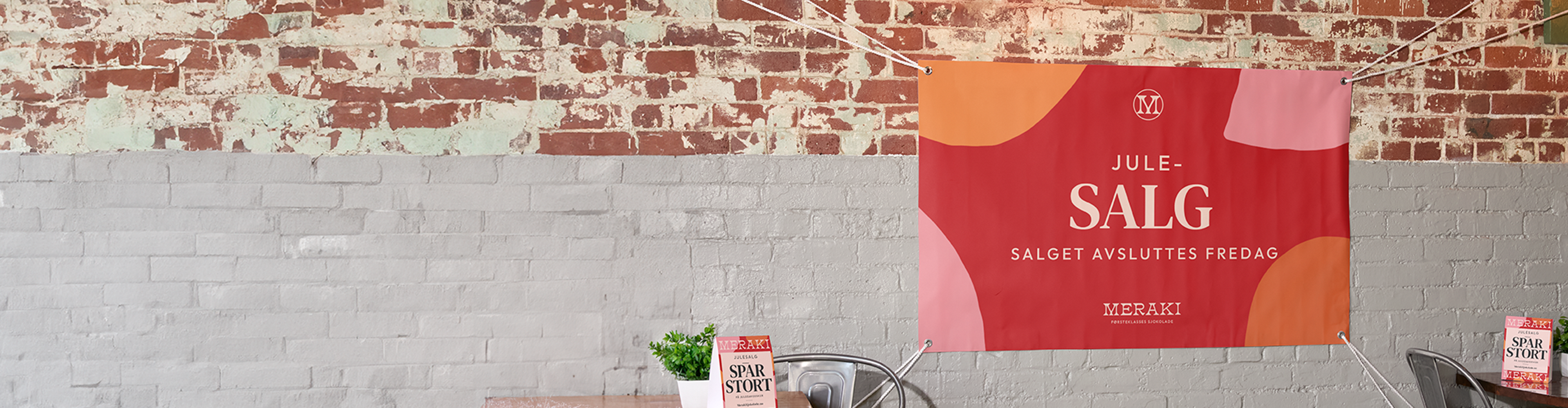 Hos oss kan du tilpasse det du ønsker med julemotiv: Hva med å bruke gatebukker, vindusfolie og vinylbannere med juledesign for å skape skikkelig julestemning utenfor butikken din? Og når du har fått kundene til å stikke innom, kan du videreføre julestemningen med tradisjonelle vinylbannere, rullebannere, juleplakater, bordskilt og teltkort for å gi dem en fullendt opplevelse. Husk også å bestille juleemballasje, silkepapir, esker og mer til gaveinnpakningen.