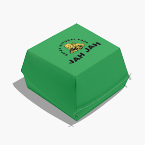 Burgerbokser med eget design legger burgerne dine (og merket ditt) rett i hendene på kundene uten søl. Burgerboksene våre er tilgjengelige i to størrelser og belagt med en barriere av rå grønnsaksvæske som gjør dem egnet for mat og bestandige mot fett og olje. De har også en lukkeflik som gjør at burgerne holder seg på plass under takeaway og levering. Våre resirkulerbare burgerbokser kan også varmes i mikrobølgeovn og plasseres i fryseren. Du kan også bruke dem til annen mat, som pommes frites, kyllingvinger, smultringer og mer.