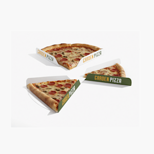 Disse pizzaslice-brettene tilbys i tre størrelser – designet for å passe små 1/8-stykker, medium 1/6-stykker eller store 1/4-stykker. De har en barriere fremstilt av rå grønnsaker som gjør dem egnet for kontakt med mat. Og de er selvfølgelig fett- og oljebestandige. Hvert brett byr på hevede kanter for å holde kundenes hender rene mens de går og spiser. Pizzaslice-brettene kan brukes i mikrobølgeovn, og de er resirkulerbare. De er også allsidige nok for andre varer som focaccia og calzone.