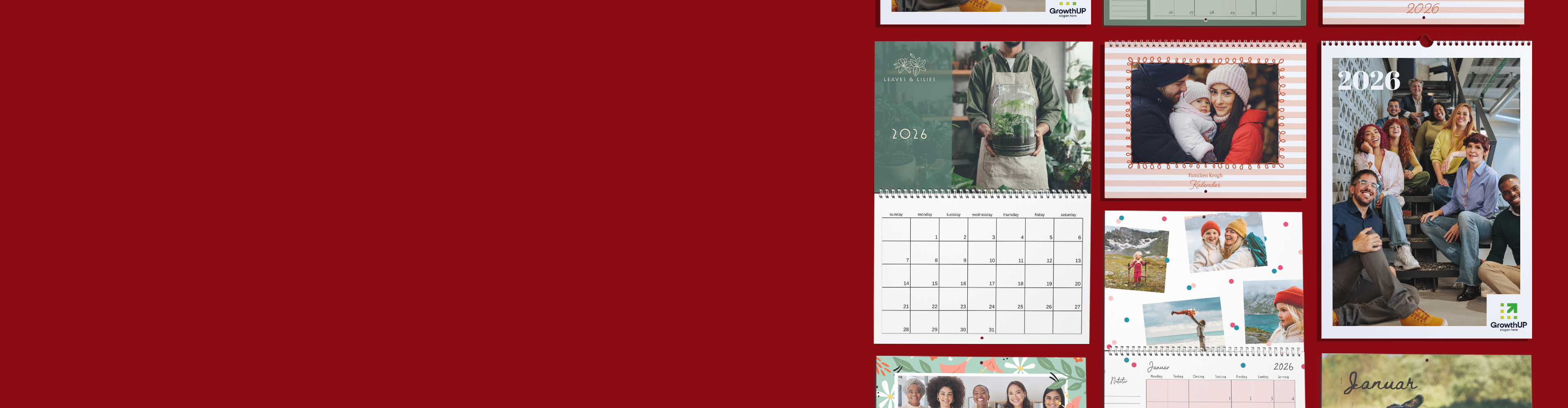Uavhengig av om du ønsker en klassisk veggkalender eller en skrivebordskalender – med designverktøyet og de gode prisene våre er det enkelt å lage en 2026-kalender som både du og lommeboken din vil elske. Velg blant en rekke temaer, farger og mønstre. Noen av kalenderstilene våre lar deg i tillegg merke spesielle datoer, som fødselsdager eller bedriftsarrangementer. Kanskje er du i ferd med å starte en ny tradisjon med en personlig familiekalender eller kundekalender for hvert år, trykt med flotte farger på kvalitetspapir.
