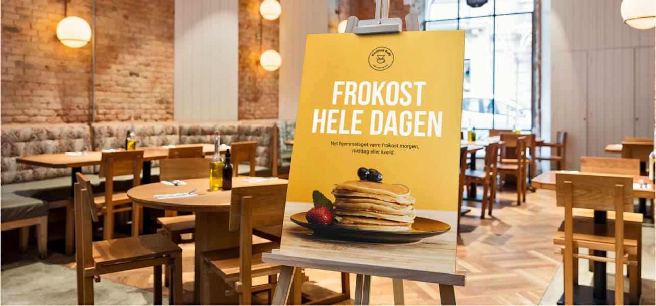 Vi tok en prat med Tristan LeBreton, Creative Director i 99designs fra Vista, for å få tips til å lage iøynefallende skilting. Les videre for å se hvilke råd Tristan ga oss og hvordan du kan designe skilt, bannere og plakater som fanger oppmerksomheten og som er enkle å lese.