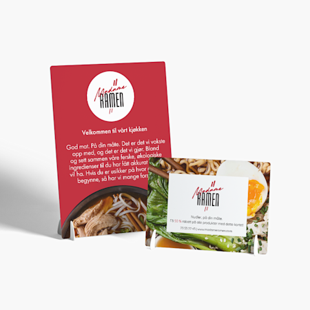 Er du en liten bedrift innen hotell- og restaurantbransjen som ønsker å øke merkevaregjenkjenningen og tiltrekke deg nye kunder? Da er du på rett sted. Tilpasset markedsføringsmateriale er den perfekte løsningen for å skape vekst for virksomheten din. Uansett om du driver restaurant, hotell eller gavebutikk, så har vi de ideelle produktene for å markedsføre bedriften din. Vær forberedt til møter, varemesser og arrangementer med et utvalg av markedsføringsmateriale som lar deg skille deg ut fra konkurrentene. Vi tilbyr også et utvalg av fullt tilpassbare emballasjeprodukter som lar deg skape et sammenhengende utseende og gi kundene dine en unik opplevelse ved utpakningen. Oppdag det store utvalget vårt av design som er skreddersydde for hotell- og restaurantbransjen, og tilpass dem til å gjenspeile merkevaren din. Uansett om du trenger et lite postkort eller et hefte med mange sider, så er vi her for å gjøre prosessen så enkel som mulig. Ekspertteamet vårt er også tilgjengelig hvis du trenger hjelp.