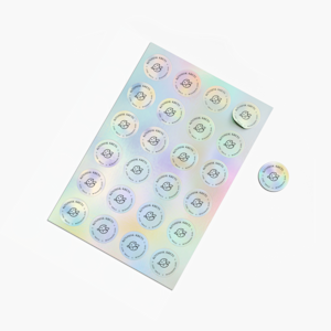 De holografiske klistremerkene våre på ark er laget av metallisert polypropylen (solid plast) og har en speilfinish som skaper en blendende effekt når lyset faller på dem. Velg mellom seks størrelser og tre standardformer, eller bruk din egen form for å lage helt unike design. Og hvis du ønsker å se hvordan klistremerkene blir før du bestiller et stort antall, kan du bestille så lite som ett ark med klistremerker for å prøve dem først.