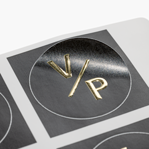 Uthevede klistremerker på ark fås i 6 størrelser og 3 former: runde, avrundede rektangler og ovale. Velg mellom sølv- og gullfolie, som begge tar seg veldig godt ut mot den hvite bakgrunnen. For å sikre et skarp trykk anbefaler vi en skriftstørrelse på minst 10 pt, og at du unngår tynne eller intrikate skrifttyper med liten plass mellom bokstavene.
