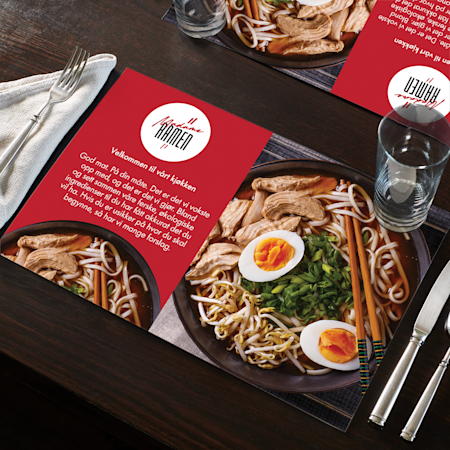Vi har de små detaljene som gjør et godt inntrykk: Bestill alt fra menyer til bordbrikker med logo.