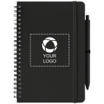 Noter ned ideene dine, og hold orden med i denne spiralinnbundne notatblokken laget av resirkulert materiale. Bruk den på møter, til å planlegge dagen eller til å skissere kreative konsepter med den inkluderte uttrekkbare pennen. Den er lett å tilpasse – legg til logo, tekst eller informasjon i det intuitive studioet. Trenger du hjelp? Designekspertene våre er her for å hjelpe deg med å sette ideene dine ut i livet.