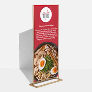 Ikke bare tar de seg godt ut, de er lette og bærbare og kan enkelt flyttes rundt i butikken eller transporteres til arrangementer og messer. Takket være det magnetiske bannersystemet, er det lett å skifte ut grafikken sånn at budskapet innendørs alltid er oppdatert. Du kan kjøpe én ramme og bestille nye bannere etter behov – enkelt, smart og økonomisk. Og hvis du er på jakt etter noe som kan brukes utendørs, kan du ta en titt på utendørsbannerne våre.Enkel designprosess