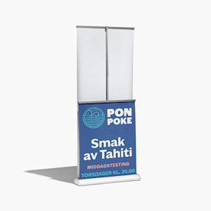 Når du trenger et skilt som tar seg godt ut fra enhver vinkel, bør du velge dobbeltsidige rullebannere. Disse skiltene har to separate bannere, som lar deg kommunisere med målgruppen fra to sider. Velg det samme designet på begge sider, eller lag to ulike design for maksimal påvirkning. Disse rullebannerne tilbys nå i tre PVC-frie materialer og med ripebeskyttelse i form av lakk, som får designet ditt til å holde seg lenge uten å sette stil eller bærekraft til side.