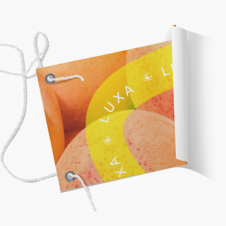 Standardalternativet er av tettvevd stoff og gir deg valget mellom ensidig og tosidig trykk. Meshstoff er et perforert stoff som luften kan passere gjennom, noe som gir mindre slitasje samtidig som teksten din blir mer synlig på dager med vind. Men du kan ikke ha tosidig trykk på alle meshstoffer. Begge stoffene er laget av polyester.