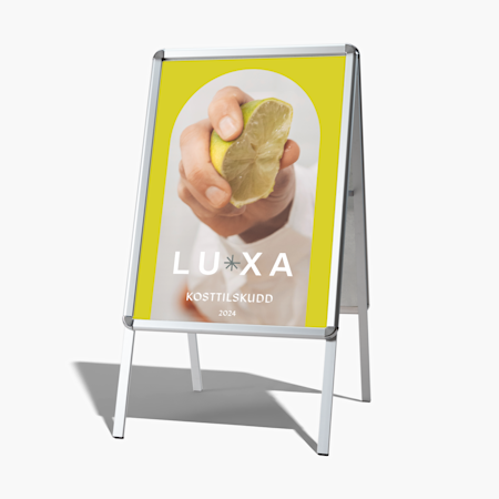 Staffeli og banner med stativ: større skilting, markedsføringsmateriell til disker og bord, utstillinger og messer.