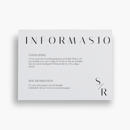 Og hvis skal dele enda mer informasjon med gjestene dine, kan du alltid legge til mer tekst i designstudioet vårt. Slik informasjon kan være: