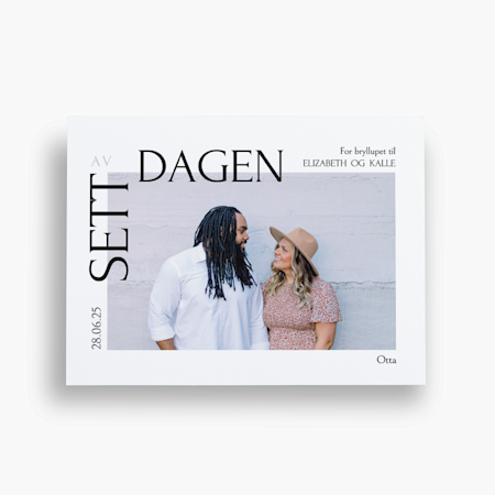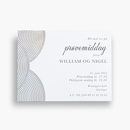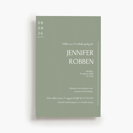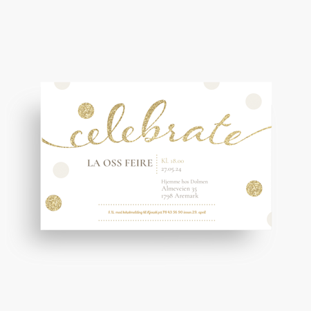 Vi tilbyr invitasjoner og kort til tradisjonelle merkedager, som bryllup, babyshower, pensjonisttilværelse, bursdag og dåp. Hos oss finner du også design som passer til nyttårsfester og andre høytider.