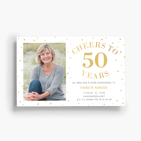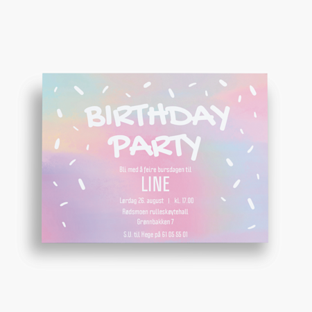 Det finnes mange morsomme og enkle muligheter for å piffe opp invitasjonene dine. Start gjerne med å velge en iøynefallende mal som matcher festens tema. Deretter kan du ha det gøy med detaljene: Når du tilpasser invitasjonen, kan du hente inspirasjon fra fargealternativene våre og pynte kortet med fullfolie eller avrundede hjørner.