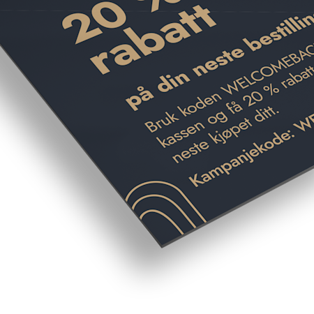 Er du på utkikk etter en måte du kan skille deg ut på i forretningsverdenen? VistaPrint har et utvalg av spesialkort som er utformet for å vekke oppmerksomheten og gi et varig inntrykk. Enten du vil holde orden på kundeavtaler eller vise frem logoen, navnet eller andre viktige opplysninger med holdbare visittkort, har vi det du trenger. Med det store utvalget vårt av alternativer kan du lage noe som er annerledes, enestående og uventet sånn at kundene husker det. Utforsk alternativene og lag noe helt unikt bare for deg – og som kundene ikke kan gå glipp av.